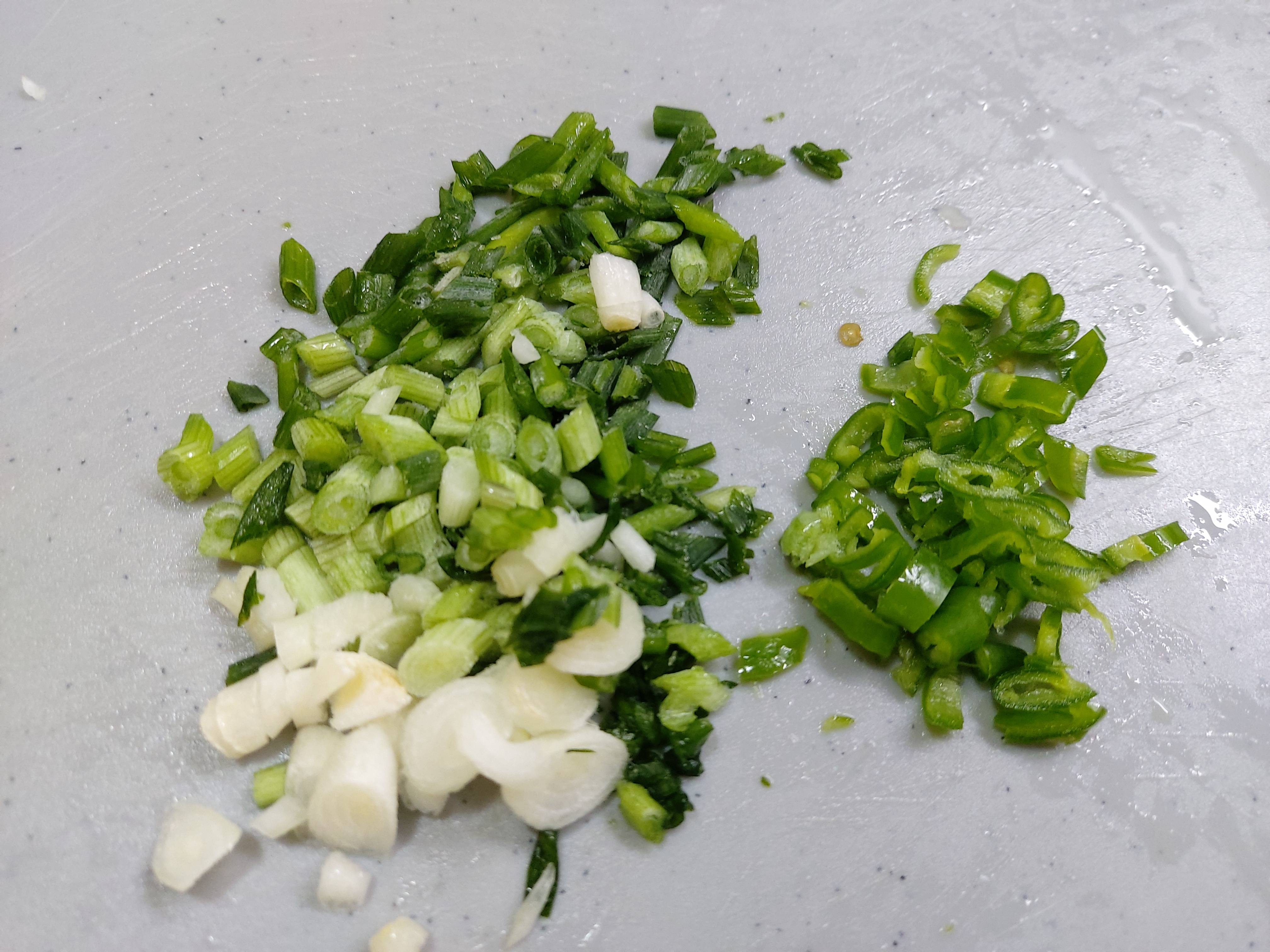 쪽파와 청양고추를 잘게 썰어 놓는다.